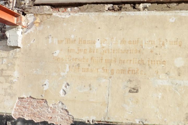 Tijdens de sloop van muren in café Boone is een Duitse tekst tevoorschijn gekomen.